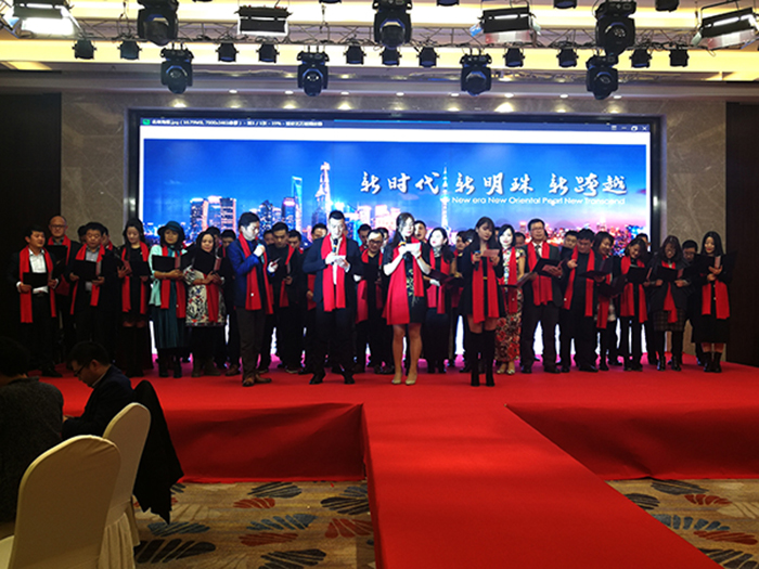 年會(huì)開始,所有會(huì)員公司老板齊唱《東方之珠》,給2018年東方明珠網(wǎng)商會(huì)年會(huì)